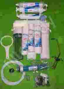 - Obudowa membrany, membrana: wydajność 100 GPD, Osmonics USA pół-przepuszczalna membrana osmotyczna składa się z wielu warstw nawiniętych na perforowany trzpien umieszczony wewnatrz membrany, zanieczyszczona woda wtłaczana jest pod ciśnieniem na powierzchnię membrany, gdzie cząstki wody przenikają przez mikroskopijne pory membrany, zanieczyszczenia zostają wydzielone i odrzucone do odplywu.