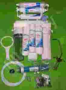 - Obudowa membrany, membrana: wydajność 100 GPD, Osmonics USA pół-przepuszczalna membrana osmotyczna składa się z wielu warstw nawiniętych na perforowany trzpien umieszczony wewnatrz membrany, zanieczyszczona woda wtłaczana jest pod ciśnieniem na powierzchnię membrany, gdzie cząstki wody przenikają przez mikroskopijne pory membrany, zanieczyszczenia zostają wydzielone i odrzucone do odplywu.