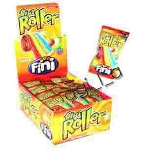 FINI ROLLER to super kwaśne żelki w kształcie tęczowych pasków o smaku owocowym. 40 sztuk w opakowaniu, każdy pojedynczy pasek zapakowany w hermetyczne opakowanie.