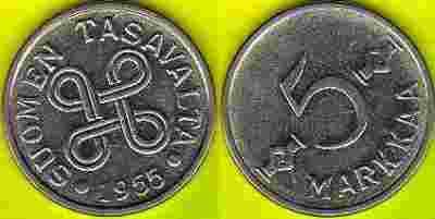 Finlanda 5 Markka 1955 r.