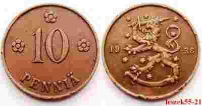 FINLANDIA 10 PENNIA 1936 - RZADSZA