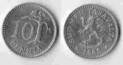 FINLANDIA 1988 10 PENNIA