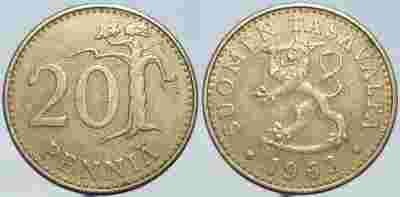 FINLANDIA - 20 PENNIA 1963 r MONETA NR 3