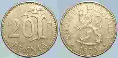 FINLANDIA - 20 PENNIA 1973 r MONETA NR 1