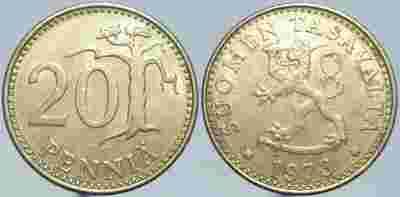 FINLANDIA - 20 PENNIA 1973 r MONETA NR 4
