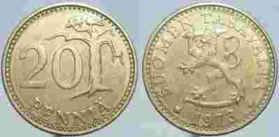 FINLANDIA - 20 PENNIA 1973 r MONETA NR 5