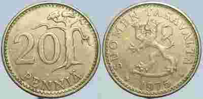 FINLANDIA - 20 PENNIA 1975 r MONETA NR 3