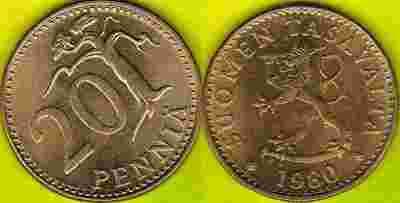 Finlandia 20 Pennia 1980 r.