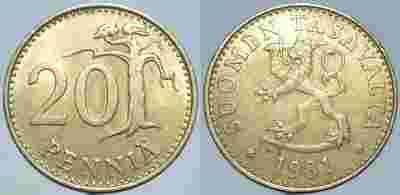 FINLANDIA - 20 PENNIA 1981 r MONETA NR 1