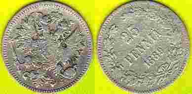 Finlandia 25 Pennia 1889 r. Ag