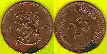 Finlandia 25 Pennia 1943 r.