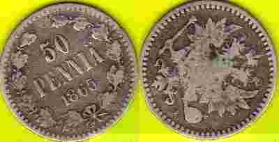 Finlandia 50 Pennia 1865 r. Ag rzadka