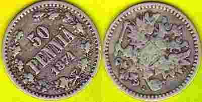 Finlandia 50 Pennia 1871 r. Ag rzadka