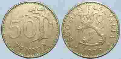 FINLANDIA - 50 PENNIA 1976 r MONETA NR 1