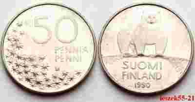 FINLANDIA 50 PENNIA 1990 M - NIEDŹWIEDŹ