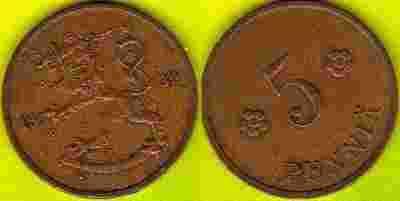 Finlandia 5 Pennia 1939 r.