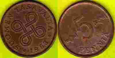 Finlandia 5 Pennia 1963 r.