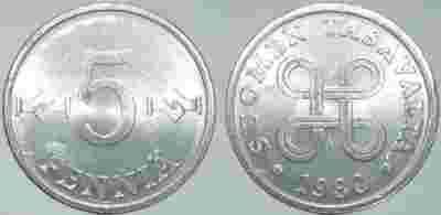 FINLANDIA - 5 PENNIA 1980 r moneta nr 1