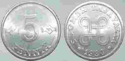 FINLANDIA - 5 PENNIA 1980 r moneta nr 3