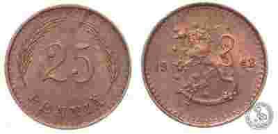 Finlandia - moneta - 25 Pennia 1942