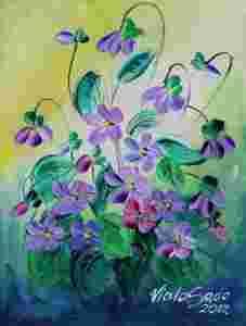 fiołki olej płótno 15 x 20 cm