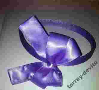 Fioletowa satynowa opaska do włosów z kokardą