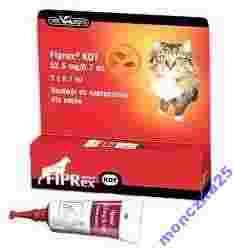 Produkt sprzedawany wyłącznie na paragon. Fiprex® Kot; 52,5 mg/0,7 ml; Roztwór do nakrapiania dla kotów. Skład: Fipronil 52,5 mg/0,7 ml Wskazania: Zwalczanie inwazji pcheł (Ctenocephalides spp.), kleszczy (Ixodes spp.) i wszy (Linognatus spp.) u kotów. Działanie zabezpieczające przed ponowną inwazją pcheł utrzymuje się przez okres 8 tygodni, a przed ponowną inwazją kleszczy przez okres 4 tygodni. Fiprex® można stosować jako leczenie wspomagające alergicznego pchlego zapalenia skóry (APZS). Przeciwwskazania:
