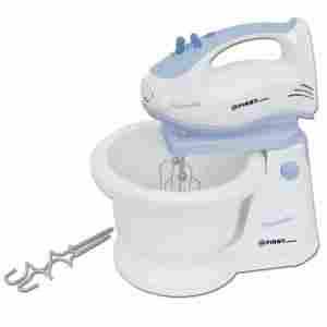 Rewelacyjny mikser z miską obrotową. Poza możliwością ustawienia pięciu prędkości, posiada dodatkową opcję turbo. Zawiera przycisk zwalniający mieszadła oraz funkcje ich blokowania, podczas pracy urządzenia. Urządzenie łatwo zdemontować , co ułatwia to jego czyszczenie. Mikser może być używany ręcznie lub na podstawie.