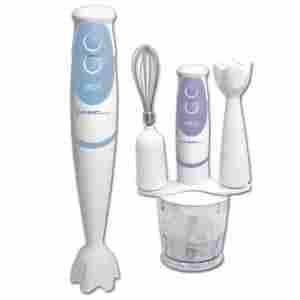 Urządzenie stanowi idealne uzupełnienie kuchennych sprzętów. Posiada możliwość ustawienia dwóch prędkości. Blender wyposażony jest w ostrze ze stali nierdzewnej. Do pakietu dołączone są akcesoria takie jak trzepaczka i szatkownica, zestaw trzymający. Produkt dostępny jest w dwóch kolorach: niebieskim i fioletowym.