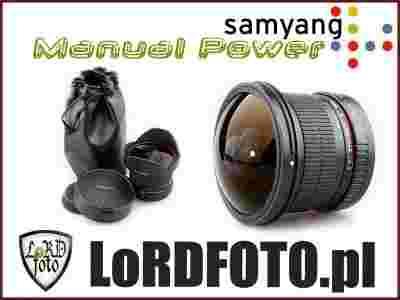 Obiektyw typu rybie oko Samyang 8mm f/3.5 AsphericalIF MC o kącie widzenia 180 stopni (dla formatu APS-C).