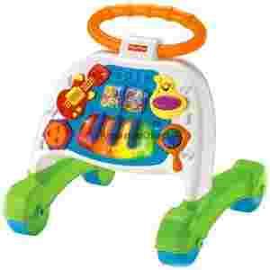 Ten chodzik jest prawdziwym muzycznym centrum zabaw. Już nawet raczkujący maluch może bawić się uruchamianiem różnych muzycznych funkcji, za każdym razem słysząc muzyczną "odpowiedź" na swoje działania. Zabawka odtwarza 3 pełne utwory instrumentalne, 2 melodie i riffy instrumentalne, rymowanki i inne dzwięki, które dziecko z radością będzie odkrywać. Dodatkową atrakcją są elementy w kształcie tamburynu i marakasów, które można uderzać wydobywając dźwięki. Dziecko, które chodzi lub uczy się chodzić, może spacerować prowadząc chodzik za kierownicę. Szeroka podstawa na kołach i solidny, wygodny uchwyt, dają dziecku oparcie i pomoc przy stawianiu pierwszych kroków.