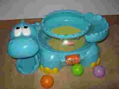 Zabawka edukacyjna Dinozaur.W zestawie 3 kolorowe piłeczki. Kulke umieszczamy na ogonie dinozaura, gdy wpadnie do brzuszka to się trzęsie (kulki podskakują). Kulka wypada na zewnątrz buźką Dinozaura to dziecko jest nagradzane meledyjką- 8 rodzajów