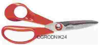 Przeznaczone do przecinania opakowań produktów spożywczych oraz cięcia warzyw. Ząbkowane, faliste ostrze zapobiega wyślizgiwaniu się przecinanego materiału spomiędzy ostrzy. Profil rękojeści oraz ustawienie ostrzy dostosowane dla osób leworęcznych.