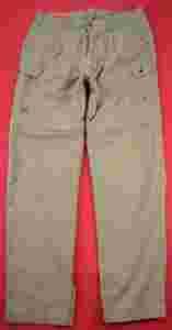 A - szerokość w pasie B - szerokość w biodrach C - wysokość stanu mierzona do kroku D - długość nogawki zewnętrznej E - szerokość uda F - szerokość nogawki