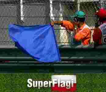 Ostrzega kierowcę przed szybszym kierowcą. W przypadku, gdy kierowca trzykrotnie zignoruje niebieską flagę, zostanie ukarany.