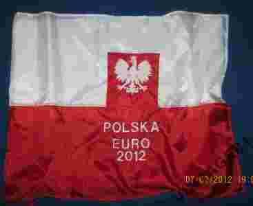 FLAGA POLSKI HAFT INDYWIDUALNY GODŁO EURO 2012