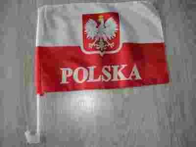 FLAGA SAMOCHODOWA POLSKI Z UCHWYTEM TANIO POLECAM!