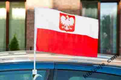 FLAGA SAMOCHODOWA POLSKA Z GODŁEM