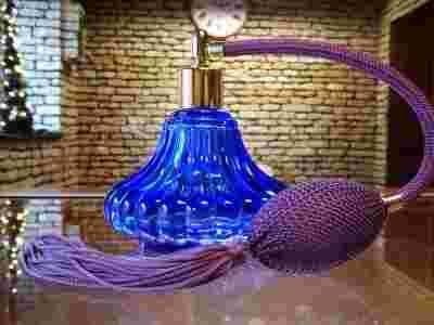 Przedmiotem aukcji jest śliczny Flakon/Peniuarek na perfumy z napełnieniem + pompka - 115 ml!