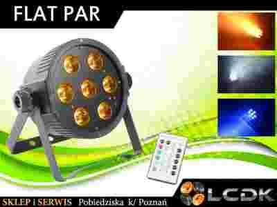 Reflektor Par LED charakteryzujący się silnym światłem 7 x 15W RGBAW oraz 9-kanałowym DMX. Urządzenie może pracować w trybach takich jak Auto, DMX, stand alone i master / slave.efekt stroboskopowy, blaknięcia, lampy błyskowej czy tryb ściemniania to tylko kilka przykładów jakie daje nam to urządznie. Idealnie nadający się dla mobilnego dj'a,zespółu oraz oświetlenia klubu czy pubu.