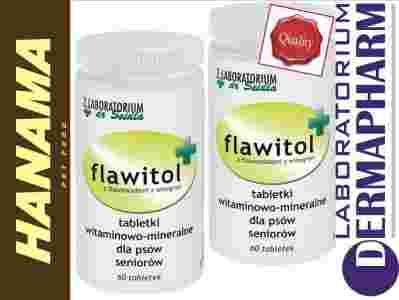 Flawitol 60 tabletek dla PSÓW SENIORÓW / w podeszłym wieku. Ze względu na bogaty skład: zwiększoną zawartość Glukozaminy, Chondroityny, wspomaganie syntezy Kalogenu w organizmie, znakomicie pielęgnuje i regeneruje aparat ruchu.