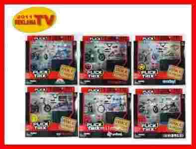 Flick Trix to kolekcja najpopularniejszych fingerbikeów. Są to miniaturowe rowery, głównie BMXy, do wykonywania tricków i różnych ewolucji za pomocą palców. Mini rowery charakteryzują się wysoką szczegółowością i są precyzyjnie wykonane. Rowery mają odkręcane koła i pedały, zdejmowany łańcuch, działający hamulec, siodełko i kierownicę z regulacją wysokości. W zestawach znajdują sie także dodatkowe akcesoria.Zestaw zawiera: 1 markowy mini rower, 1 siodełko, 2 pedały, 2 felgi z oponami, 1 kierownicę do tricków, 1 arkusz naklejek, 1 ramę, 1 stojak, 1 narzędzie, 2 pegi, 1 pudełko, 1 planszę na numer, 3 ochraniacze, 2 uchwyty kierownicy.Zmontuj swoją wersję rower do trików!