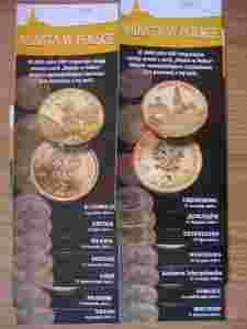 Licytujesz foldery cały komplet z serii Miasta w Polsce w ilości 15 sztuk W 2009 roku NBP rozpoczął emisję monet dwuzłotowych z serii „Miasta w Polsce”, której celem jest upamiętnienie najpiękniejszych miast naszego kraju. W 2011 r. w serii „Miasta w Polsce” ukazała się następująca moneta: •15 grudnia 2011 r.: Kalisz •14 listopada 2011 r.: Kraków •10 października 2011 r.: Łódź •15 września 2011 r.: Poznań •24 sierpnia 2011 r.: Mława •22 lipca 2011 r.: Gdynia W 2010 r. w serii „Miasta w Polsce” ukazały się następujące monety: •7 grudnuia 2010 r.: Katowice •17 listopada 2010 r.: Miechów •19 października 2010 r.: Gorlice •23 września 2010 r.: Kalwaria Zebrzydowska •24 sierpnia 2010 r.: Warszawa •29 lipca 2010 r.: Trzemeszno W 2009 r. w serii „Miasta w Polsce” ukazały się następujące monety: •9 grudnia 2009 r.: Trzebnica •27 listopada 2009 r.: Jędrzejów •21 września 2009 r.: Częstochowa Przy zakupie większej ilości folderów i na kilku moich aukcjach koszty wysyłki z uwagi na wagę i gabaryt proszę uzgodnić ze sprzedawcą Pytania proszę kierować na nr. tel. 505[zasłonięte]553