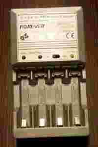 Ładowarka do akumulatorów AA/AAA NiMH/NiCd (2 lub 4sztuki). Wyposażona w mikroprocesor kontrolujący proces ładowania z funkcją delta V. Maksymalny prąd ładowania 500mA dla typu AA oraz 300mA typu AAA. Ładowarka posiada bardzo przydatną funkcję"DISCHARGE" - rozładowywanie akumulatora przed ponownym ładowaniem. Pozwala to na ograniczenie efektu pamięci. Posiada układy zabezpieczające przed przegrzaniem. Status procesu ładowania jest obrazowany na diodach LED. Dwa kanały ładowania. Ładowarka bezpośrednio podłączana jest do gniazdka elektrycznego.