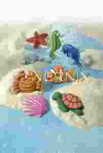 foka 5,5cm, rozgwiazda 6cm, krab 5,5cm, żółw 6cm, ryba 5,5cm, delfin 7cm,