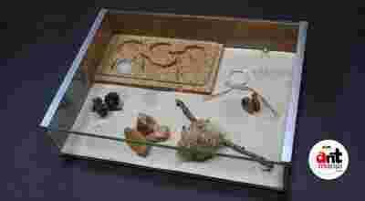 7. Wystrój areny: kamienie, igliwie, drobne patyczki, szyszka oraz piasek kwarcowy.
