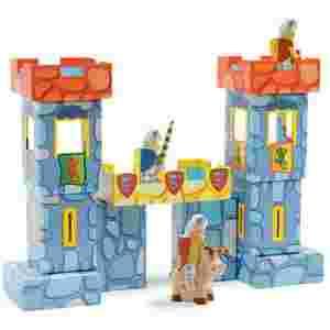 Fantastyczne, kolorowe klocki z wytrzymałej, lakierowanej tektury + figurki rycerzy i wspaniała zabawa w budowanie zamku gwarantowana. Łatwo zbudować, przestawić i złożyć.