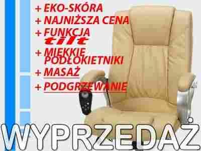 Fotel biurowy MANLINE Masaż Grzanie ekoSkóra Beż
