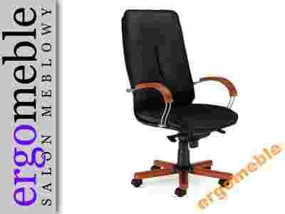 Linia foteli gabinetowych tapicerowanych skórą naturalną. Drewniane nakładki podłokietników oraz podstawy jezdnej. Elementy metalowe chromowane. Regulacja wysokości siedziska za pomocą podnośnika pneumatycznego. Stabilna metalowa podstawa jezdna polerowana lub lakierowana standardowo z samohamowanymi kółkami do powierzchni dywanowych za dopłatą 20 zł