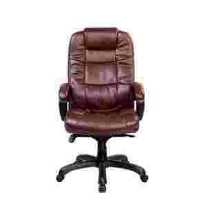 - Fotel biurowy obrotowy, tapicerowany ekoskórą w kolorze brązowym.